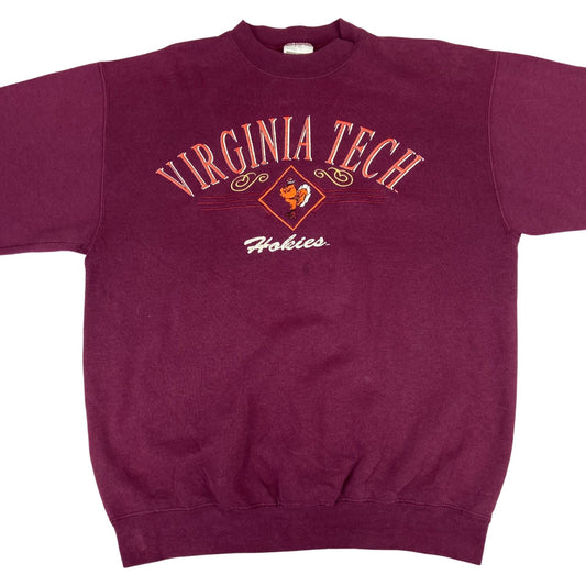 Vintage 90s Burgundy Virginia Tech Hokies NCAA Crewneck Sweatshirt Large
