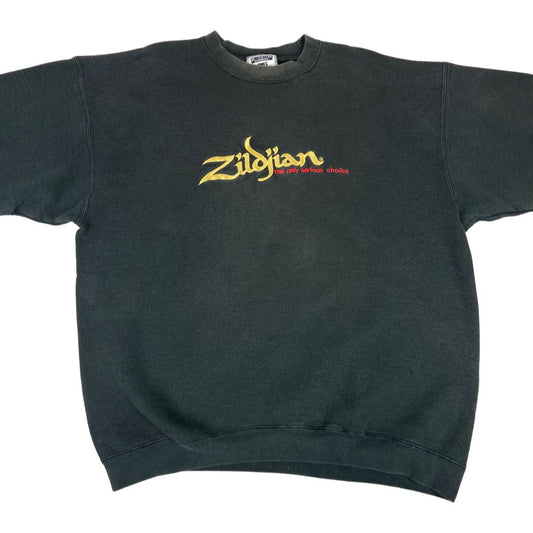 Vintage Rare 90s Black Embroidered Zildjian Crew Neck Lee Jumper XL