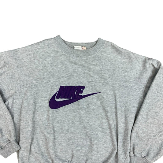 Vintage 1990s Nike Grey Sweater Crewneck Jumper Embroidered Spell-Out Logo Large
