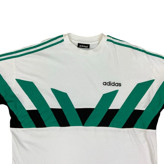 Vintage 1990s Adidas White Green Black Colour Block Football T-Shirt XL