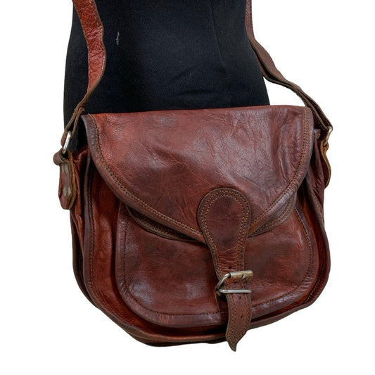 Vintage ‘La Donna’ Brown Leather Crossbody Handbag