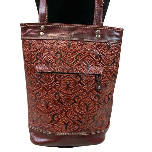 Vintage Boho Burgundy Black Indian Leather Hand Tooled Decorative Shoulder Bag