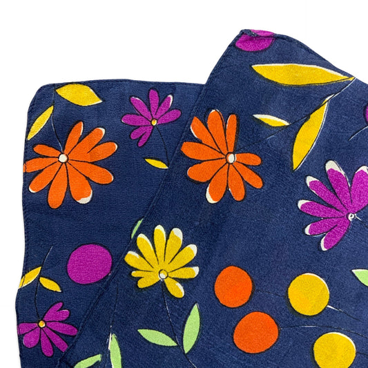 Vintage Y2K Blue Yellow Orange Purple Green Floral Scarf