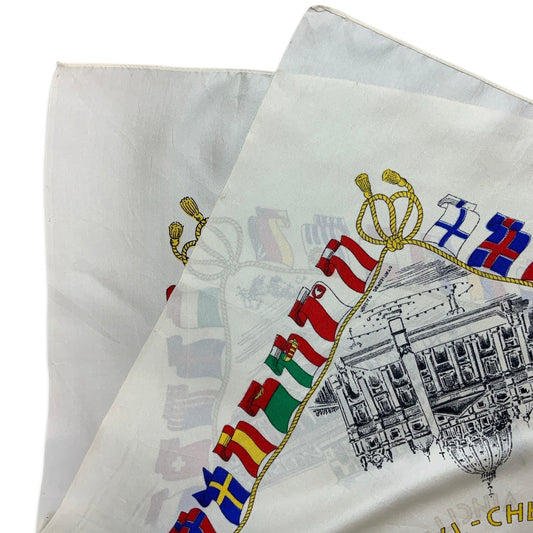 Vintage Cream Gold Red Blue Illustrated Italian Souvenir Scarf