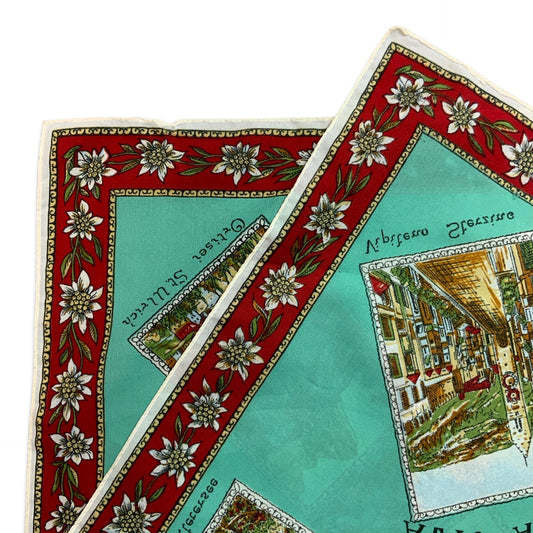 Vintage Blue White Red Green Austrian Souvenir Scarf