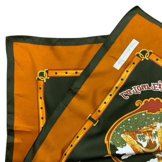 90s Vintage Black Orange Green Esprit Abstract Silk Scarf