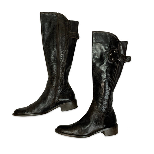 Vintage Dark Brown Leather Boots with Buckle UK 4.5