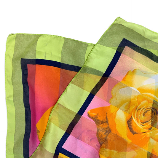 Vintage Pink Orange Green Bright Rose Print Scarf