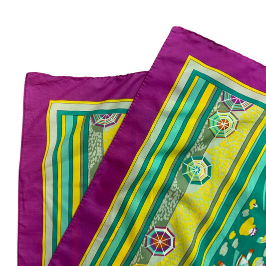 Vintage Teal Yellow Purple Seaside Novelty Print Scarf