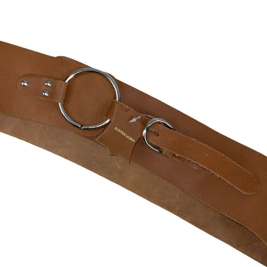Vintage 'Echtes Leder' Brown Loop Buckle Thick Belt