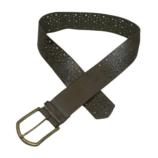 Vintage 90s 00s Y2k Thick Brown (HG-2551) Leather Geometric Cut-Out Buckle Belt