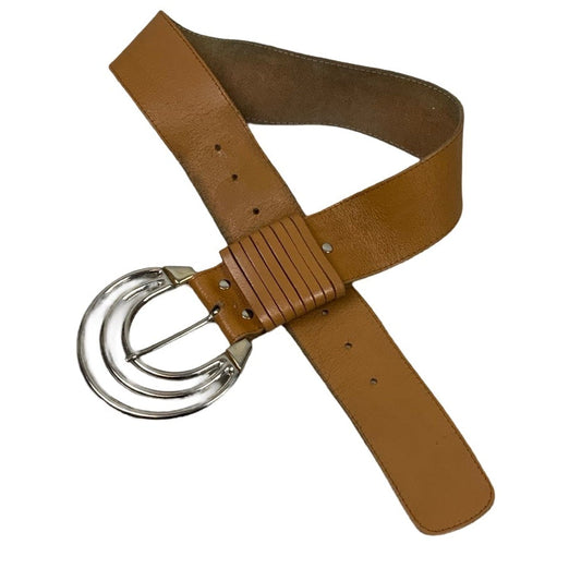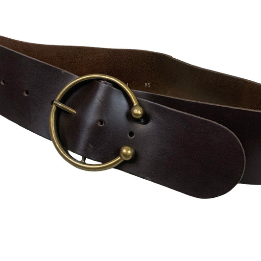 Vintage 90s Brown (70021) Leather Crescent Gold Ring Buckle Belt