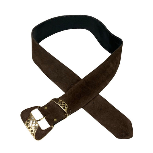 Vintage 90s 00s Y2k Brown Suede Black Leather Gold Buckle Belt