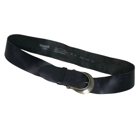 Vintage 80s 90s ‘Vanzeffl by BGM’ Black (791) Leather Silver Buckle Belt