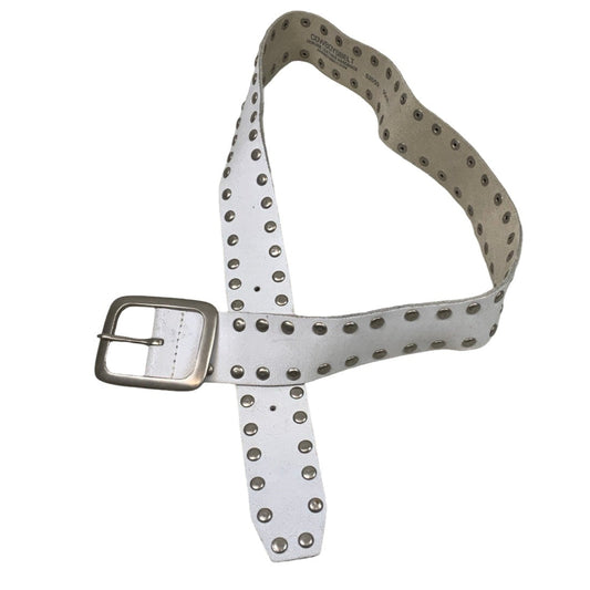 Vintage 00s Y2k ‘Cowboys Belt’ White (5259) Leather Silver Studded Buckle Belt