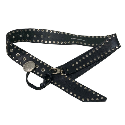 Vintage 90s Black Studded Leather Silver Coin Cowboy Punk Buckle Belt