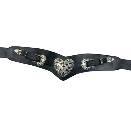 Vintage Black Western Leather Silver Heart Buckle Belt