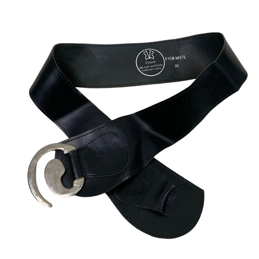 Vintage 90s ‘Formul’ Black Faux Low Rise Leather D-Ring Spiral Buckle Belt