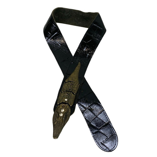 Vintage 90s 00s Y2k Black Shiny Faux Leather Low-Rise Alligator Stud Buckle Belt
