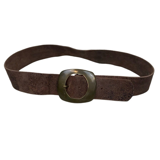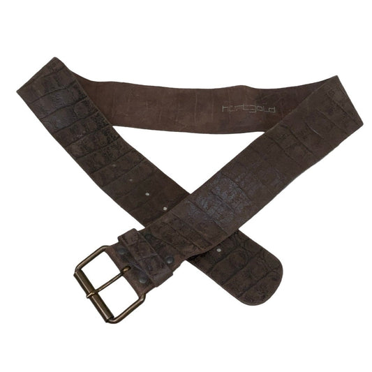 Vintage 90s 00s ‘Huft Gold’ Brown Suede Croc Embossed Leather Buckle Belt