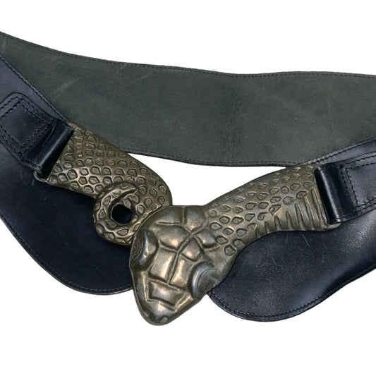 Vintage 80s 90s Black Thick Leather Statement Snake Clip Buckle Belt