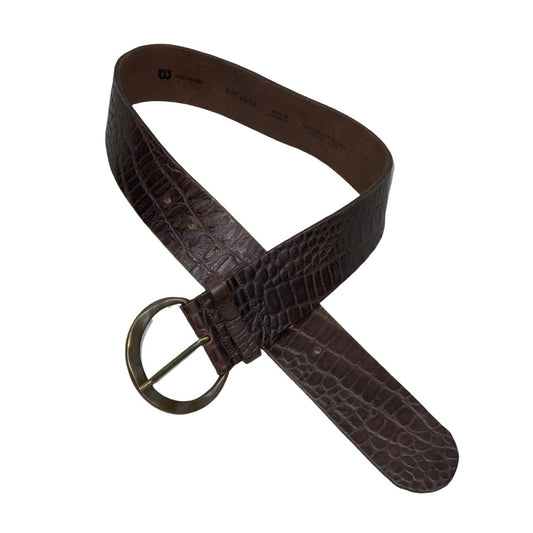 Vintage 80s 90s ‘Weinmann’ Brown Suede Croc Leather Buckle Belt