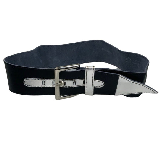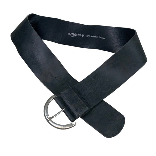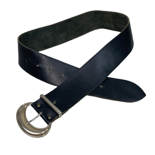 Vintage 80s 90s Black Leather Silver Buckle Belt