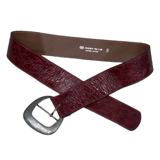 Vintage 80s 90s 'Penny Belts' Red Textured Leather Asymmetric Square Buckle Belt