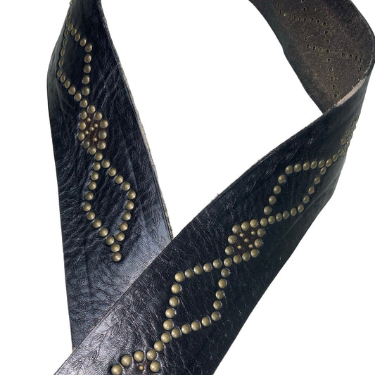Vintage 90s 'Fossil' Black Leather Geometric Studded Buckle Belt