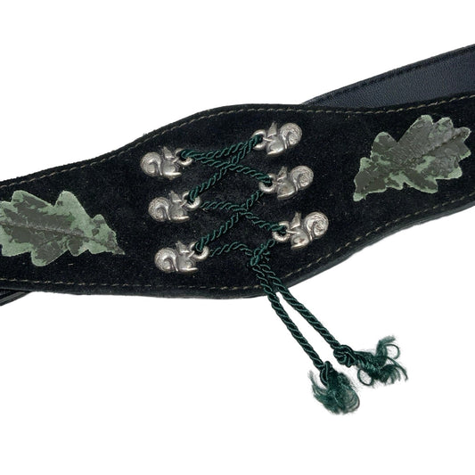 Vintage 70s 80s Black Suede Leather Oak Leaf Squirrel Handmade Corset Belt