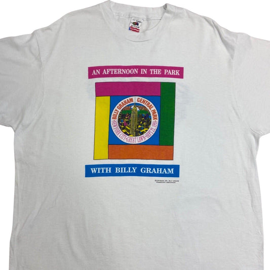 Vintage 1991 White Billy Graham Central Park Graphic Print T-shirt L
