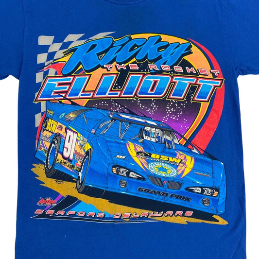 Vintage 90s 00s Blue NASCAR Graphic Print T-shirt S