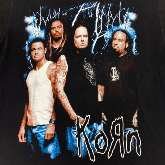 Vintage 90s Black Blue Korn Graphic Print T-shirt M