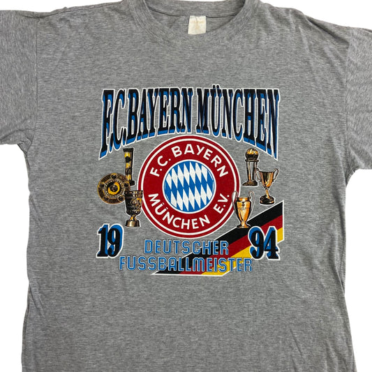 Vintage 1994 Grey Bayern Munich Graphic Printed T-shirt L