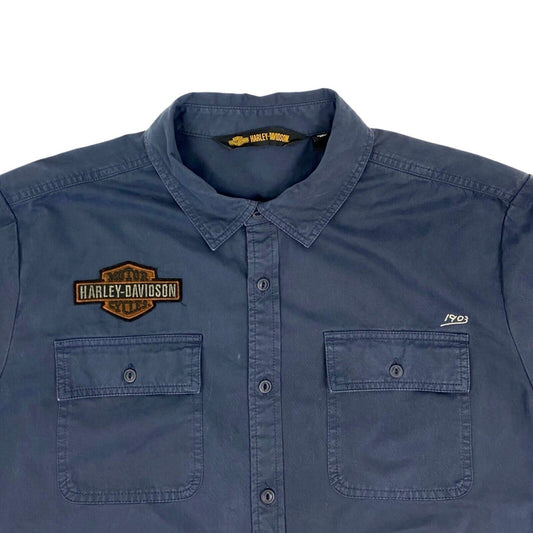 Vintage 90s 00s Blue Harley Davidson Button Down Graphic Print Shirt L XL