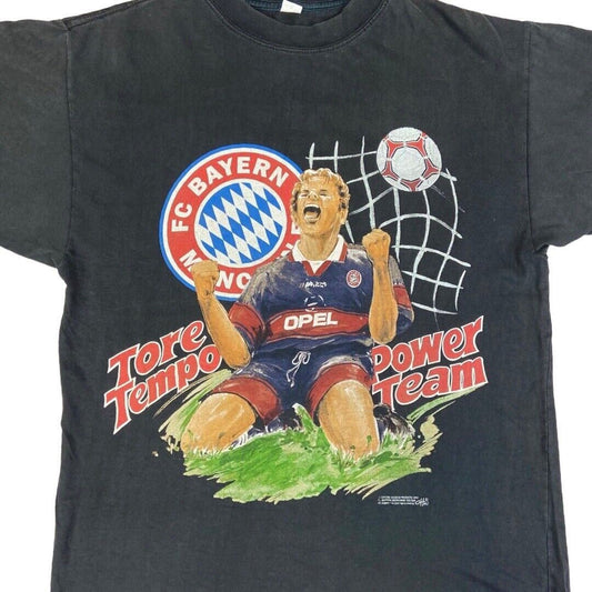Vintage Rare 1997 Black Bayern Munich Graphic Print T-shirt S