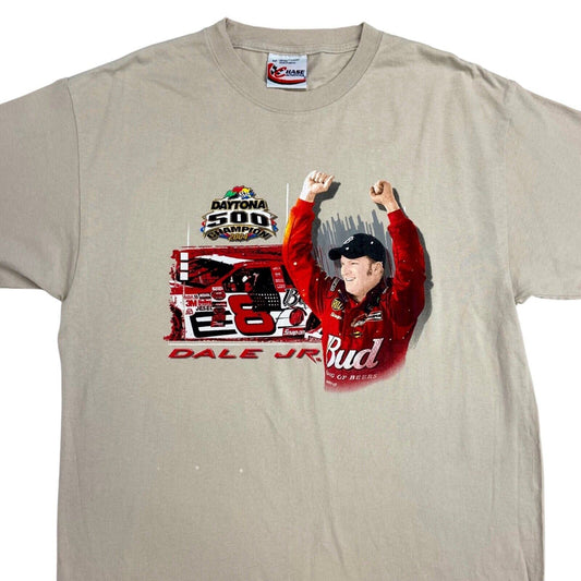 2004 Beige Dale Earnhardt Jr Daytona 500 Graphic Print Champion T-shirt M