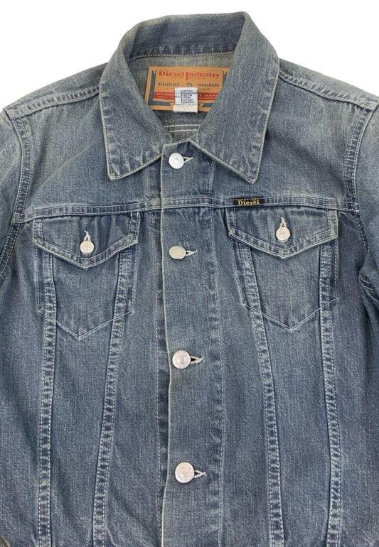 VTG 90s BLUE GREY DIESEL DENIM TRUCKER JACKET SIZE S
