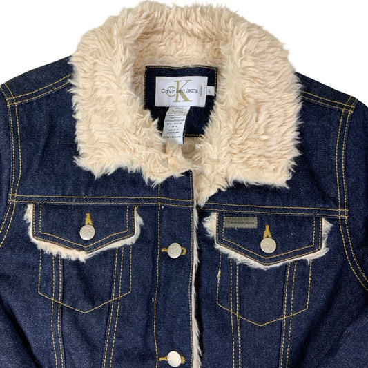 Vintage 90s Calvin Klein Jeans Dark Blue Denim Sherpa Quilted Jacket S M