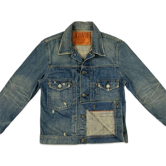 VTG STYLE EDWIN JAPANESE DENIM PLEAT FRONT TYPE 1 CINCH JACKET ROCKABILLY 36” S