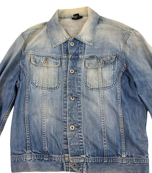 Y2K DIESEL LIGHT BLUE WASH FADED DENIM TRUCKER JACKET SIZE XL