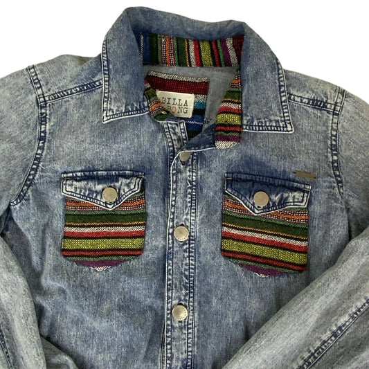 Vintage 90s Billabong Colourful Tapestry Stonewashed Denim Shirt S M