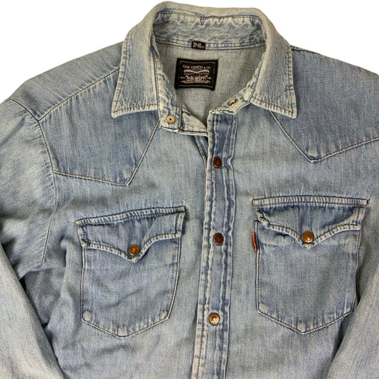 Vintage Levi Strauss & Co Orange Tab Light Blue Pop Button Denim Shirt S M