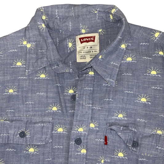 Vintage 00s Y2K Levi Strauss & Co Blue Sunset Short Sleeve Shirt S