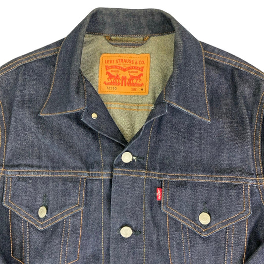 Vintage 90s (75230) Levi Dark Blue Raw Denim Trucker Jacket S M