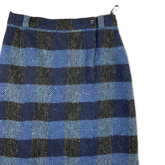 Vintage 90s Blue & Black Plaid Wool A-line Skirt 8 10