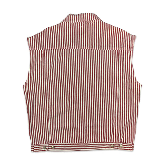 Vintage Red White Hickory Stripe Denim Gilet Jacket L XL
