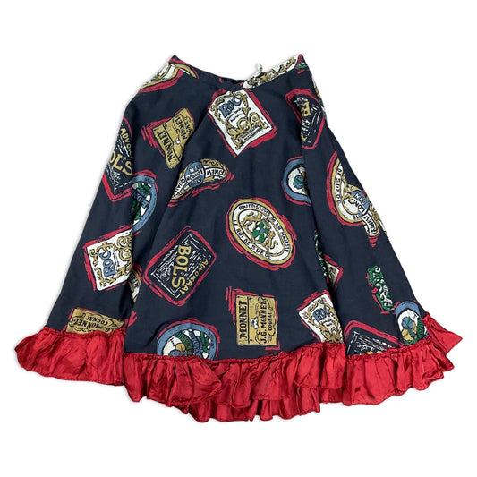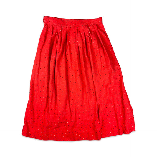 Vintage Navy & Red Novelty Print A-line Midi Skirt 10