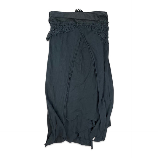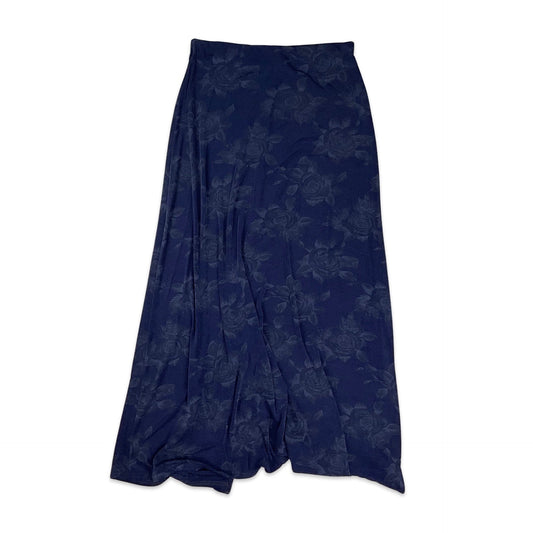 Vintage Navy Floral Fitted Maxi Skirt 12 14