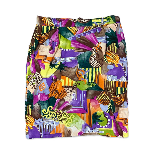 Vintage Purple Green & Orange Abstract Print Pencil Skirt 14